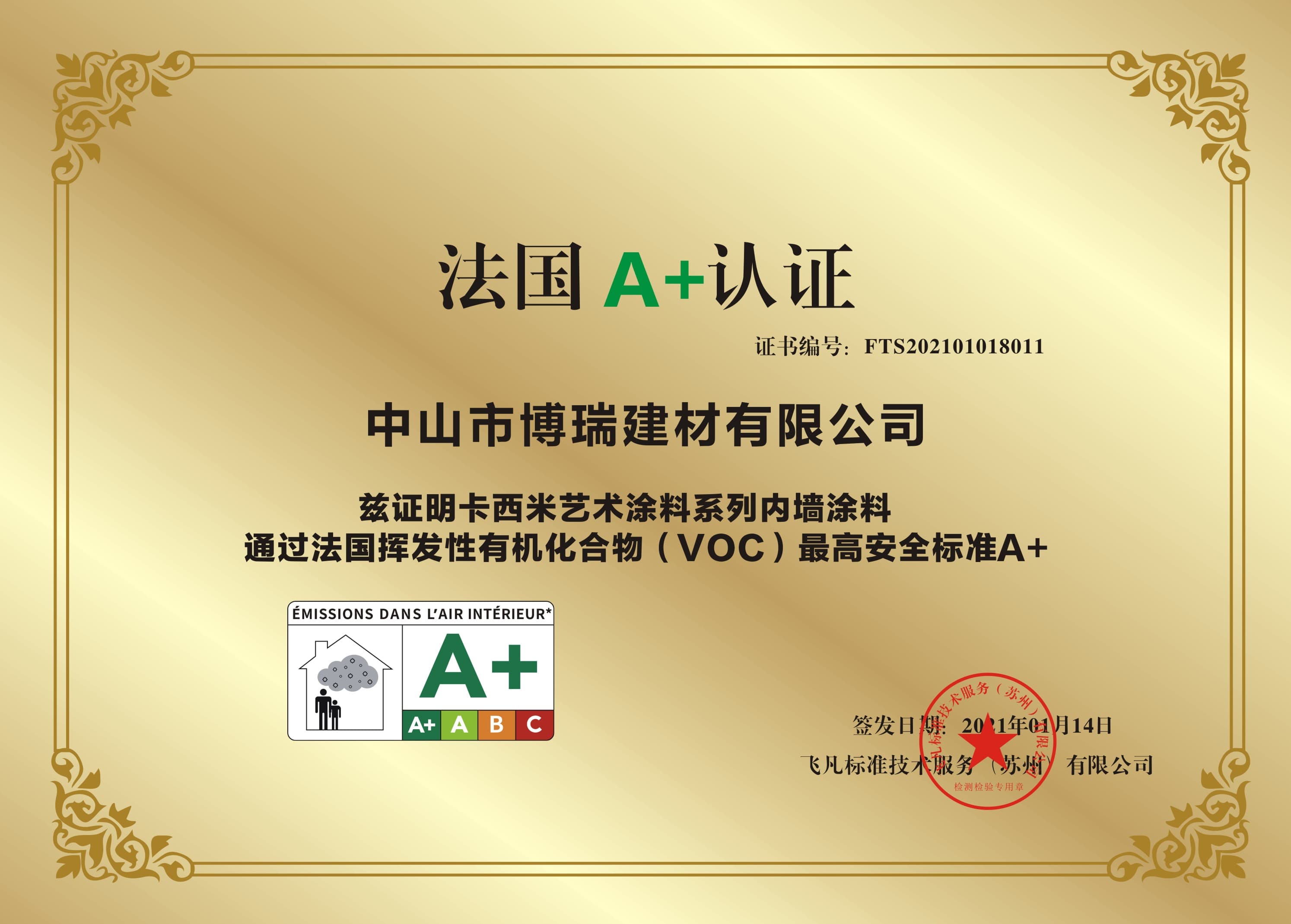 法國(guó)揮發(fā)性有機(jī)化合物(VOC)最高安全標(biāo)準(zhǔn)法國(guó)A+認(rèn)證